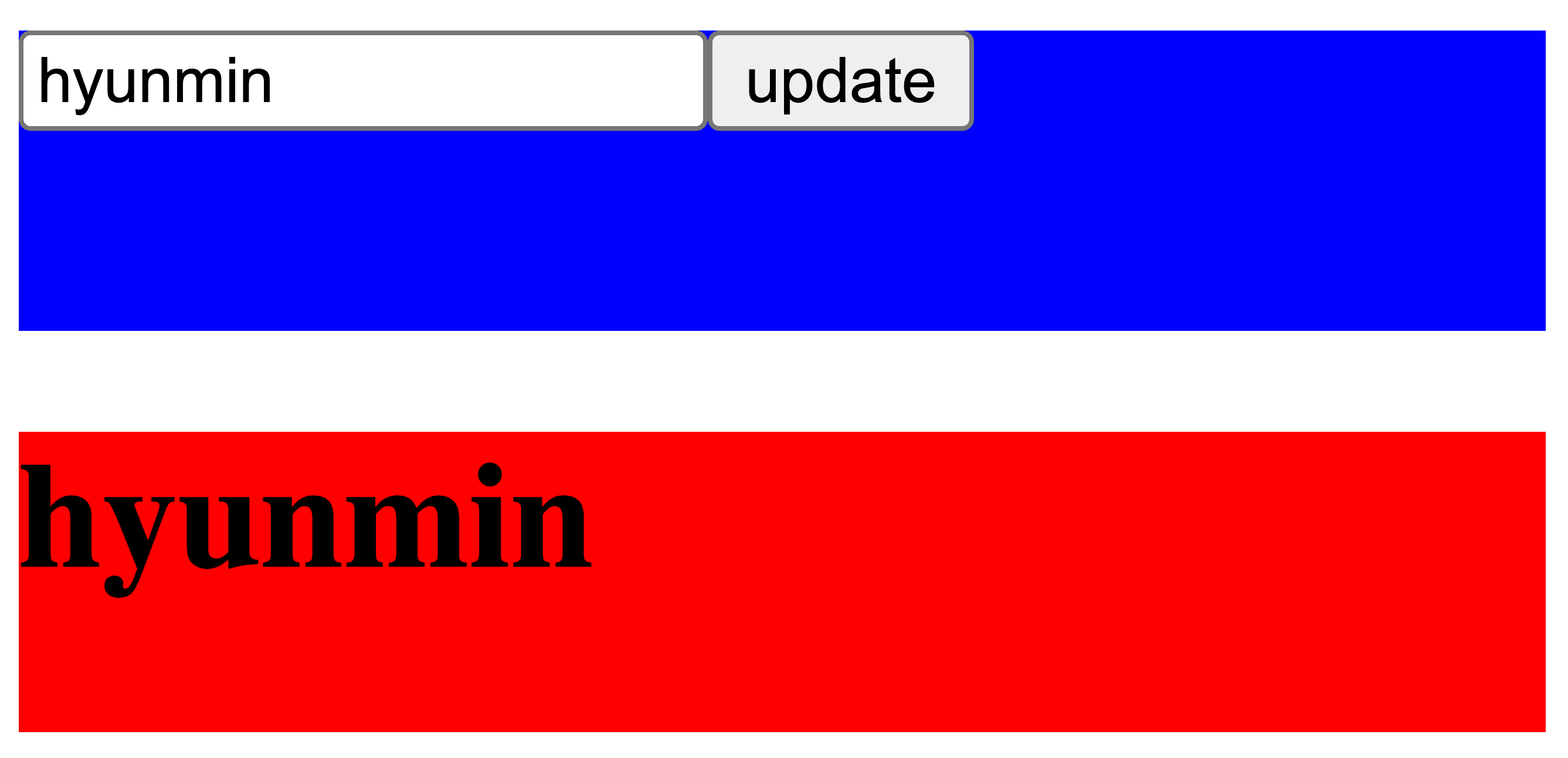 파랑 컴포넌트에서 이름을 업데이트하면 이를 전역 상태에 반영하여 빨강 컴포넌트에 반영되도록 하겠다.